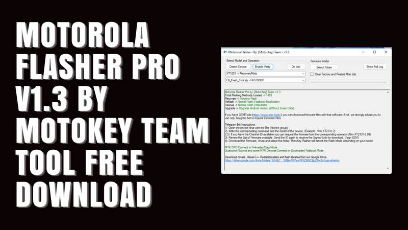 Motorola Flasher Pro V1.3 by Moto-Key Team Tool is a tool used to flash any Android smartphone and to set up new firmware on the device. It helps in flashing and installing new firmware on the Motorola smartphone. This tool is compatible with most Motorola smartphones and supports the latest Android versions.