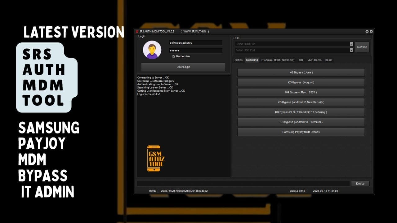 Srs auth mdm tool – complete mobile unlocking solution with kg bypass, samsung payjoy mdm removal, and it admin management features